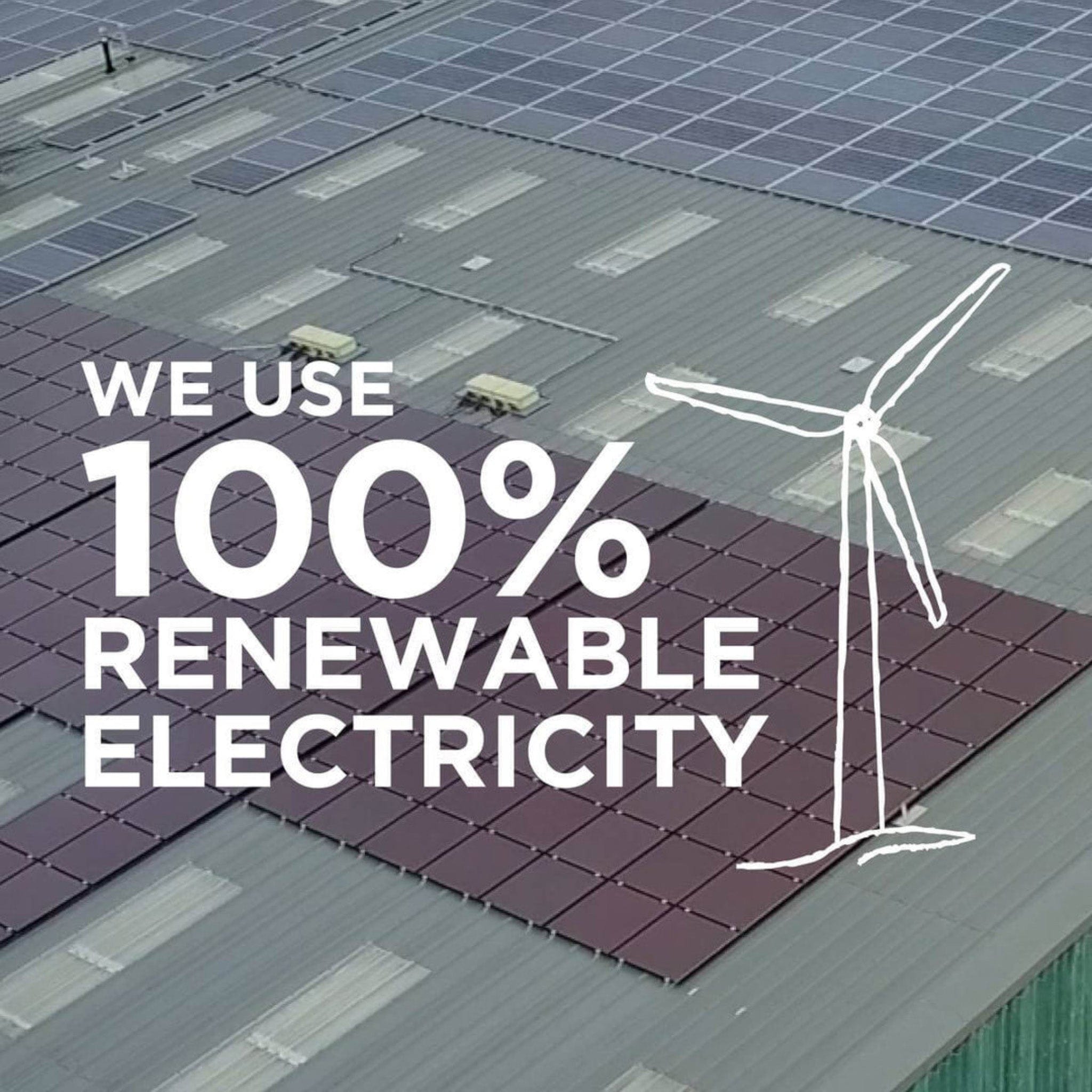 Our eco-manufacturing facility in Dorset, England, is powered by 100% renewable energy. In addition to this, we generate 15-18% of the site’s electricity is generated by the 700m2 of solar panels we installed there. We also choose 100% renewable electricity and gas to power our stores and offices.