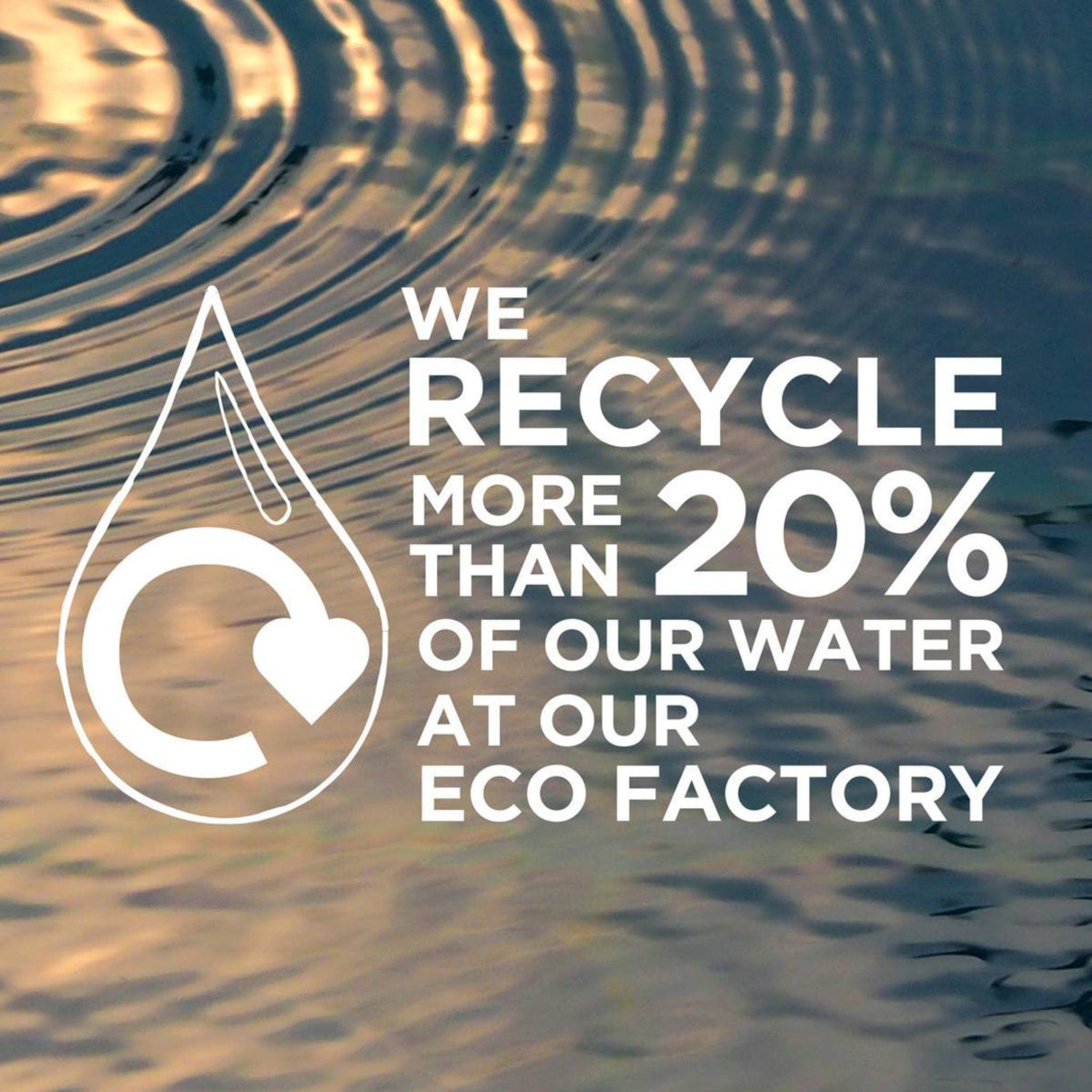 Freshwater is a limited resource and requires valuable resources to make it safe to use – and we take active steps to limit our freshwater use. We have a water recycling system at our eco-factory, which recycles up to one million litres of water every year. Greywater from manufacture and rainwater goes towards non-sanitary uses such as flushing toilets. This accounts for around 20% of our water use and we intend to remain at 20%, even as our production grows. Another step we take to reduce our freshwater use is to aerate appropriate sink taps at our eco-factory. We also fund freshwater availability projects, such as rainwater collection tanks for our suppliers of tea tree oil in Kenya.