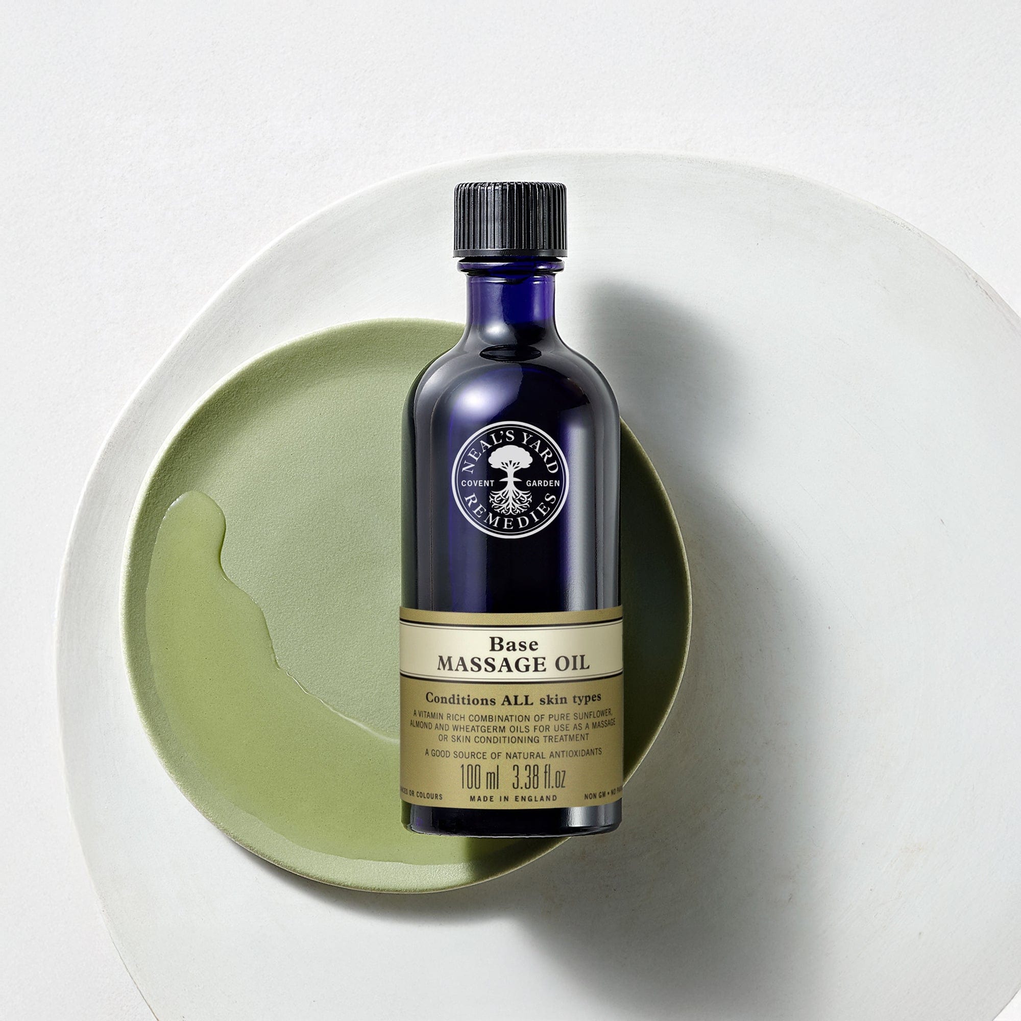 A massage oil with a blend of conditioning sweet almond, wheatgerm and organic sunflower vegetable oils, to moisturise.