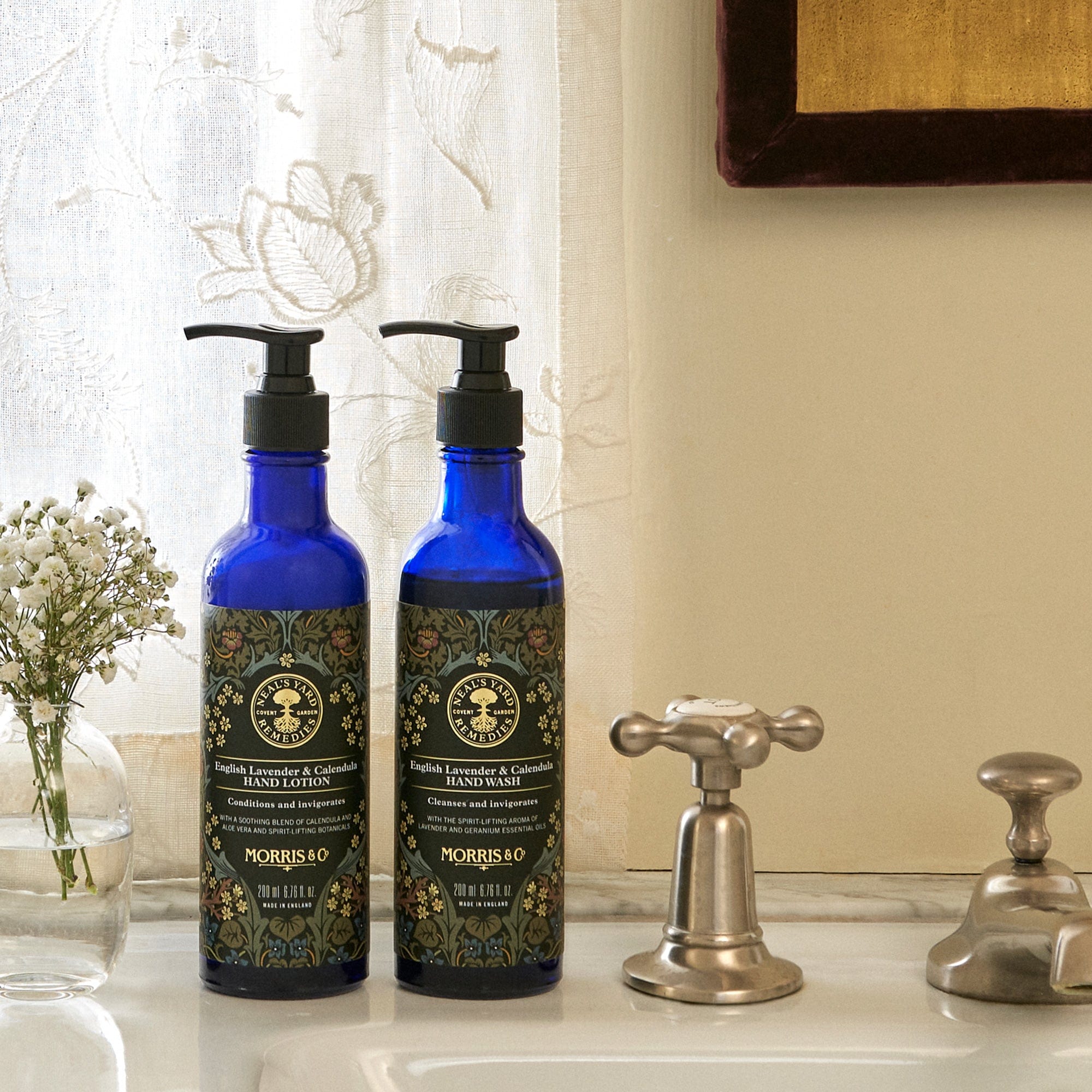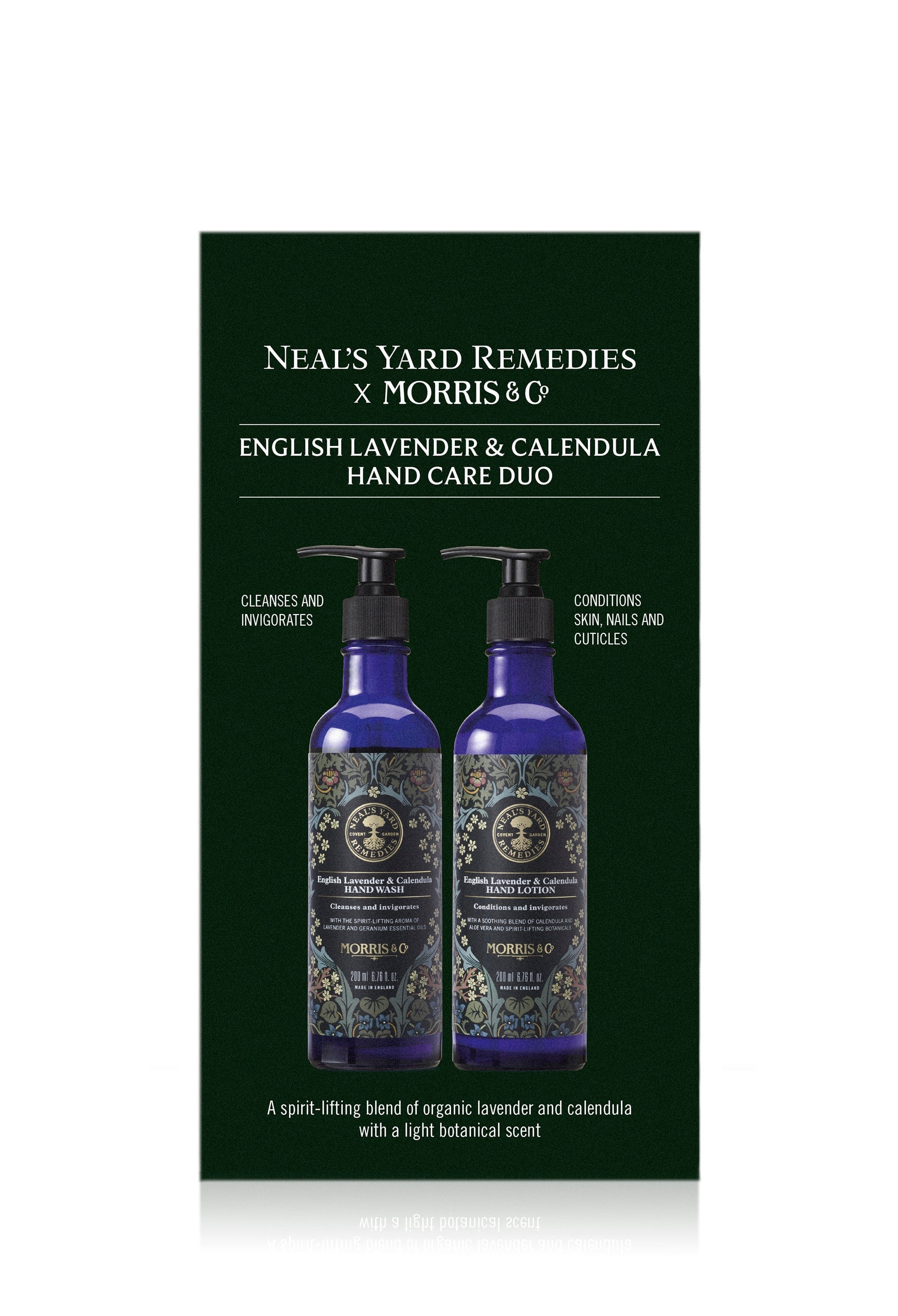 This duo of sink-side saviours, created in collaboration with Morris & Co., is inspired by British flower meadows and celebrates the nourishing nature of English lavender and calendula. The set reflects a shared commitment to preserving biodiversity and draws inspiration from the iconic Blackthorn print, honouring the nurturing properties of herbs and wildflowers found in English meadows.