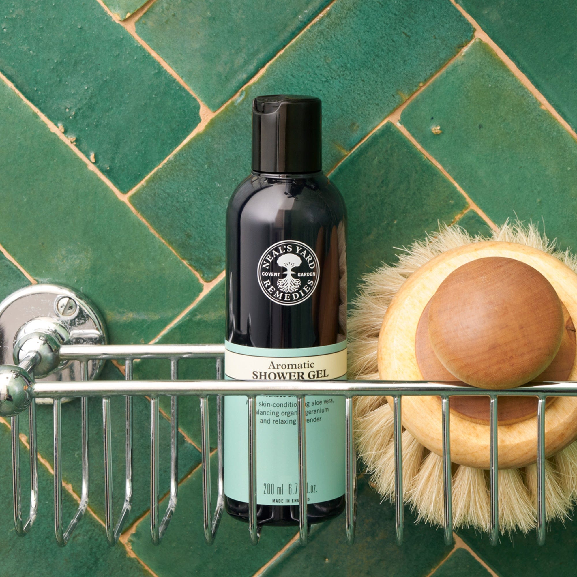 Enjoy a naturally aromatic and subtly scented cleansing experience with this skin-conditioning shower gel. The soothing blend of balancing organic geranium and relaxing organic lavender essential oils creates a calming atmosphere while caring for your skin. It leaves skin feeling refreshed, comforted and with a delicate floral aroma.