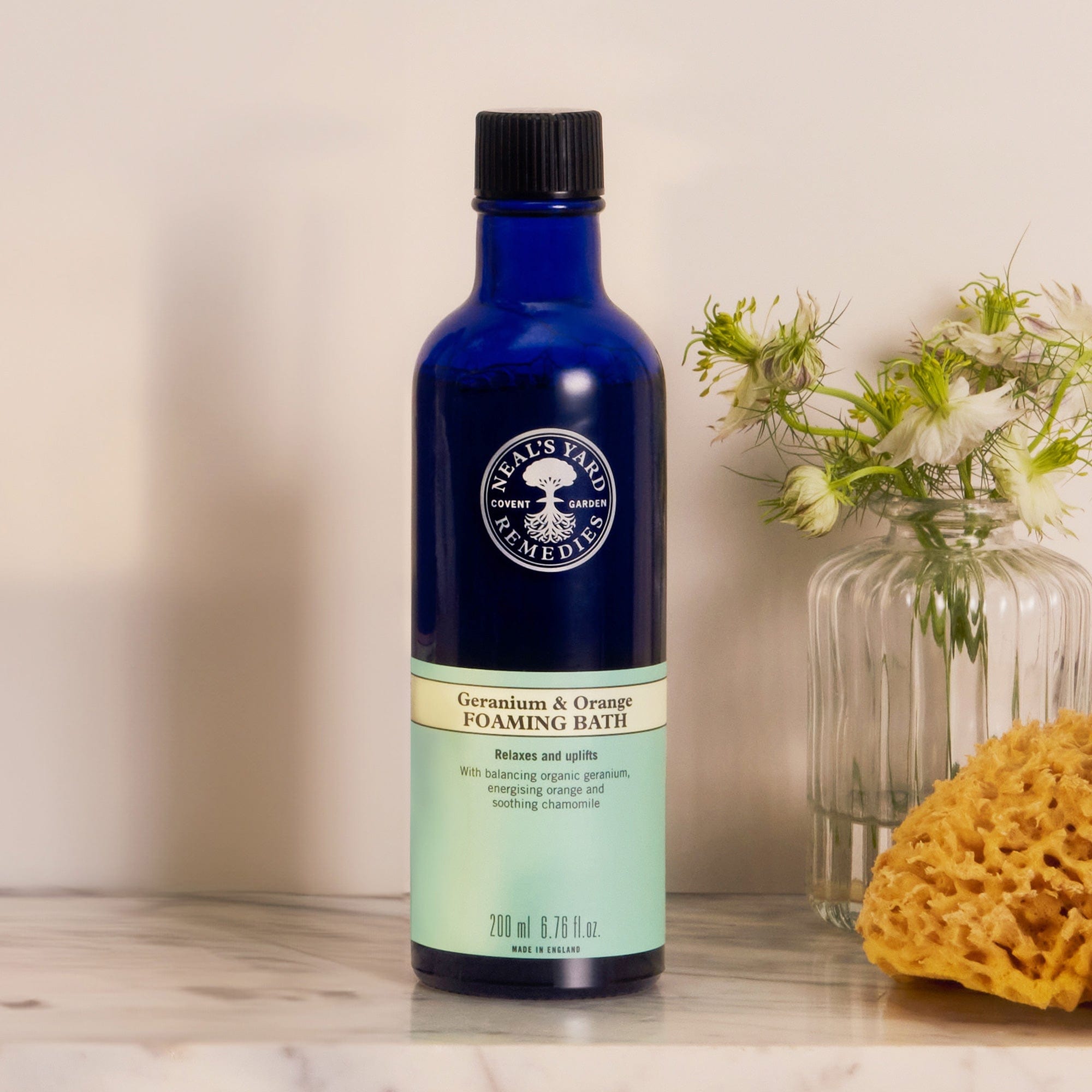 Soak and unwind with this gently cleansing, luxurious foaming bath. The beautifully uplifting blend of organic, balancing geranium, energising orange and soothing chamomile helps to relax both body and mind, promoting a sense of calm and wellbeing.
