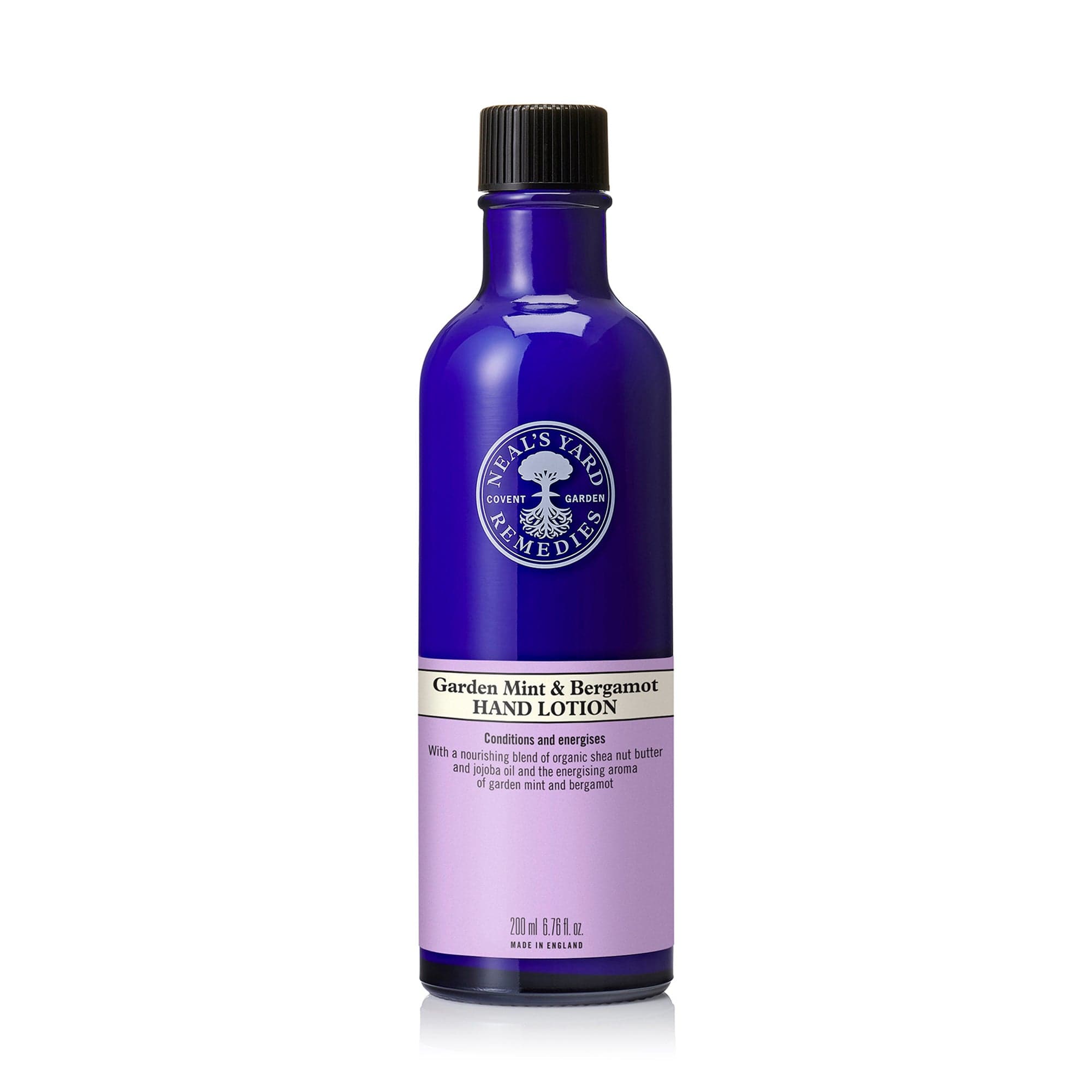 Enriched with nourishing shea nut butter, jojoba and evening primrose oil, our luxurious organic lotion conditions hands to leave them beautifully fragranced with the scent of freshly picked organic garden mint and zesty Sicilian bergamot.