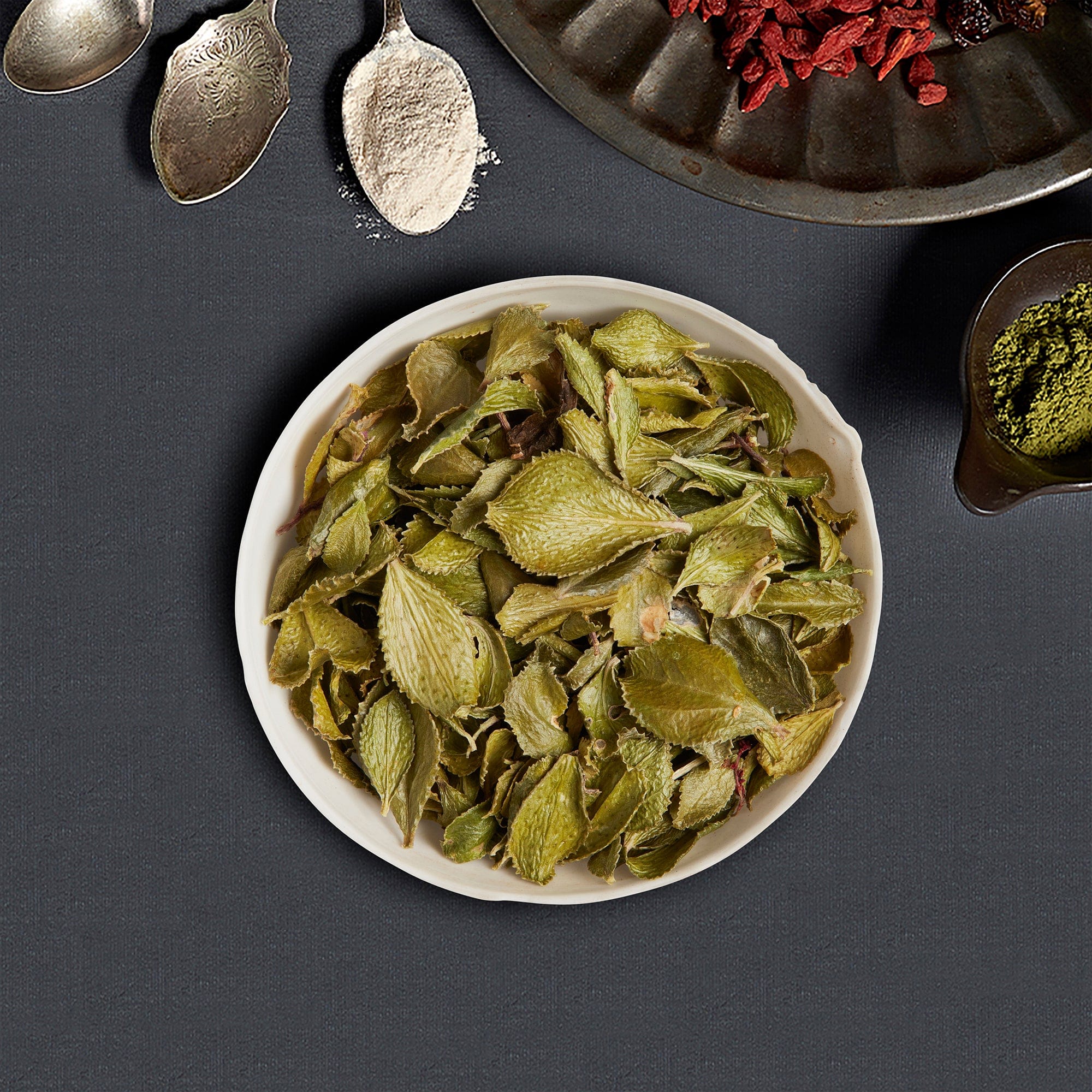 Dried buchu, packed in renewable, plant-sourced packaging.