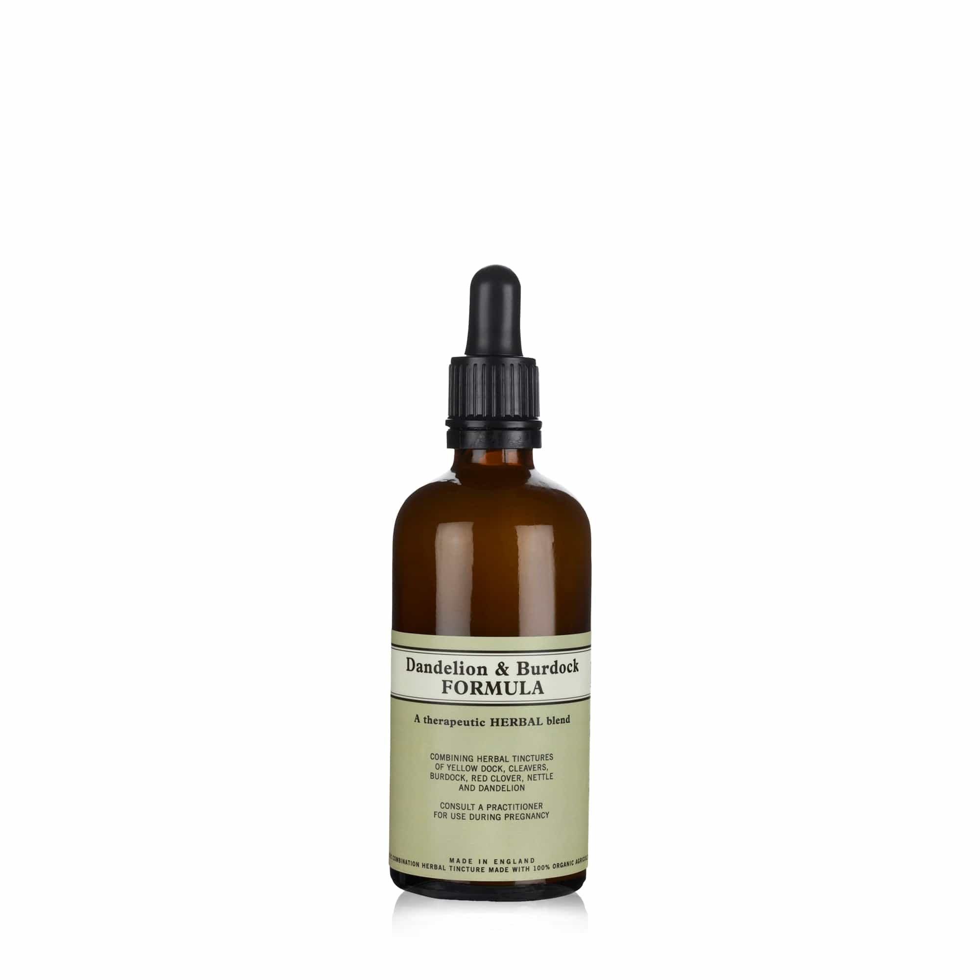 INGREDIENTS: Dried herb to liquid ratio W/V 1:3, 45% alcohol Water, organic alcohol**, Yellow dock Rumex crispus root* 5%, Cleavers Galium aparine herb* 5%, Burdock Arctium lappa root* 3.75%, Red clover Trifolium pratense flower* 3.75%, Nettle Urtica dioica leaf* 3.75%, Dandelion Taraxacum officinalis root* 3.75% *Organically produced ingredient,