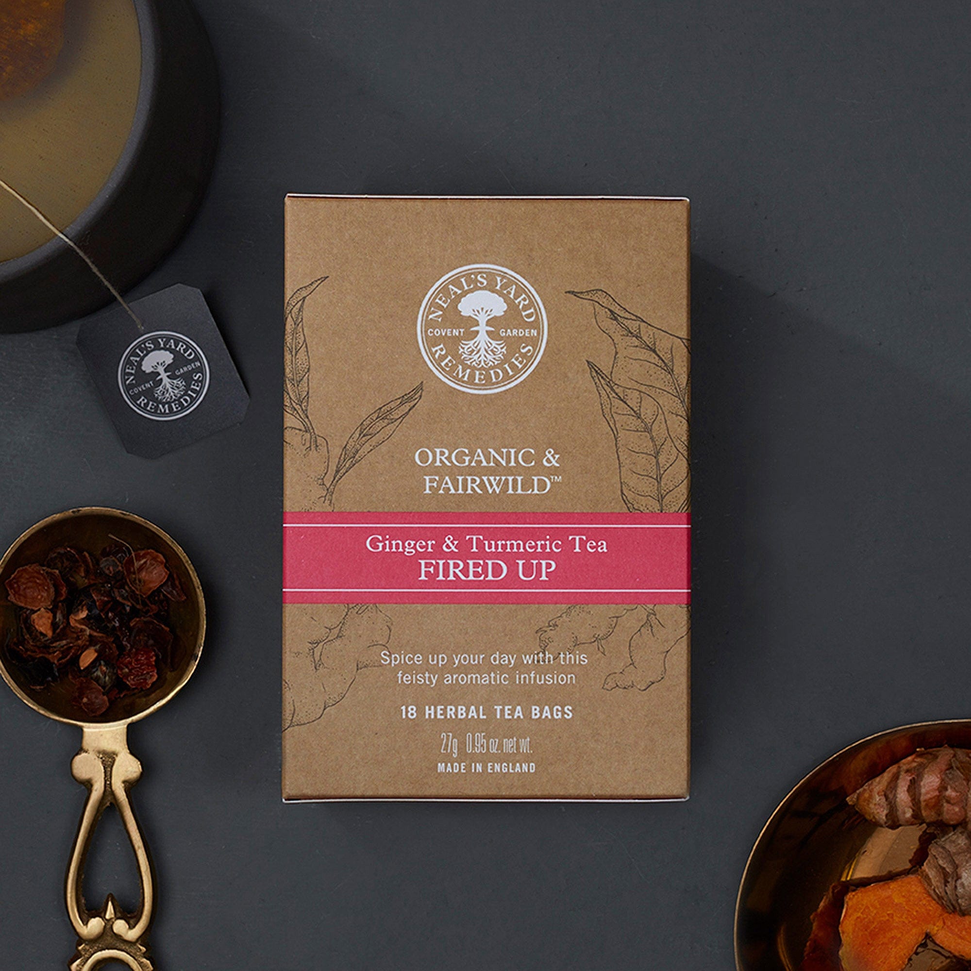 Spice up your day with a cup of Fired Up tea. Formulated by our herbal experts, we’ve infused feisty ginger with the earthy notes of turmeric and sweet aromatic liquorice to create a warming blend with a spicy kick.
