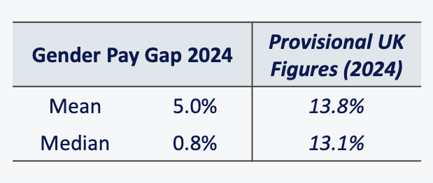 Our mean gap has decreased by 18%, from our April 2023 figures and is now over 8% lower than the provisional UK average estimate of 13.8%. While our median pay gap has also decreased by 8% from 2023.